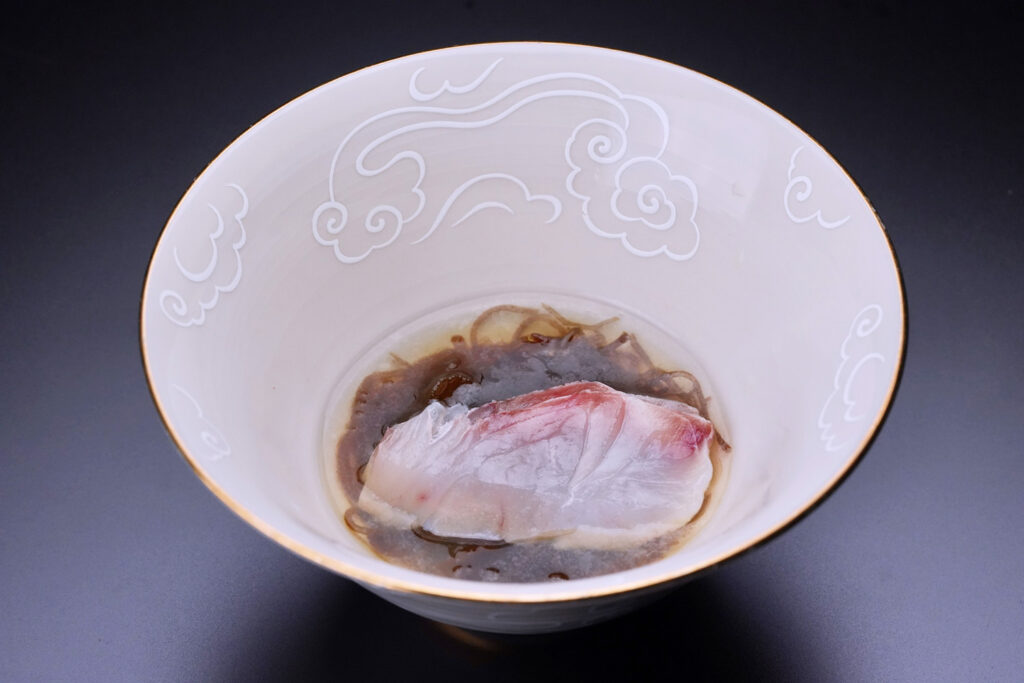 【止肴】天然鯛昆布締め、もずく酢