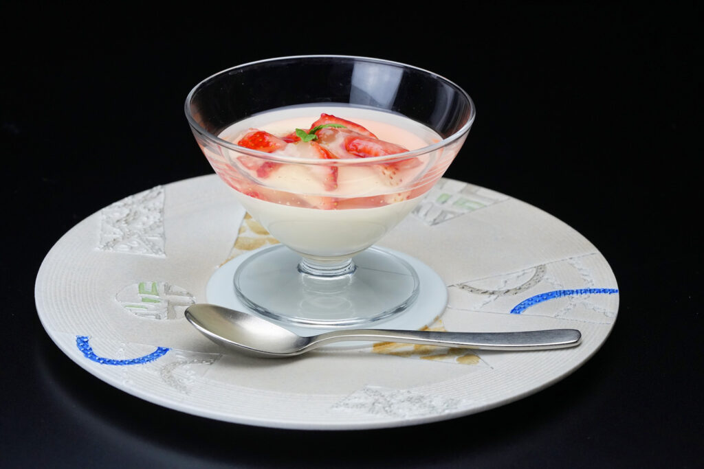【デザート】甘酒パンナコッタ・季節の果物ワインゼリー掛け